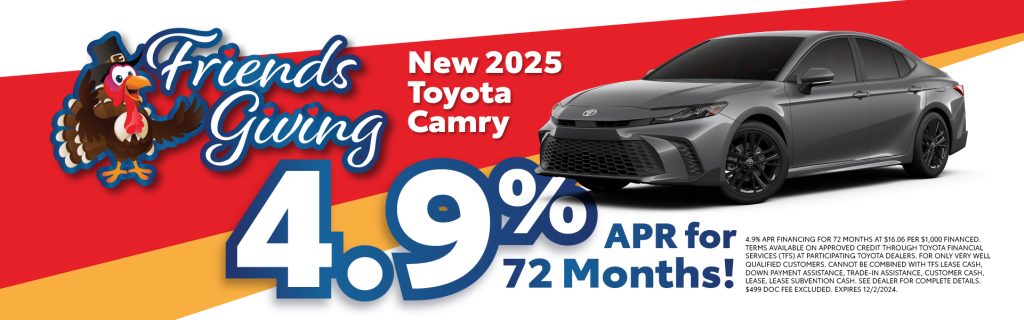 Our Friendsgiving event is the perfect time to explore incredible deals across the Toyota lineup. With offers available on new 2024 and 2025 models, there’s no better time to upgrade your ride.