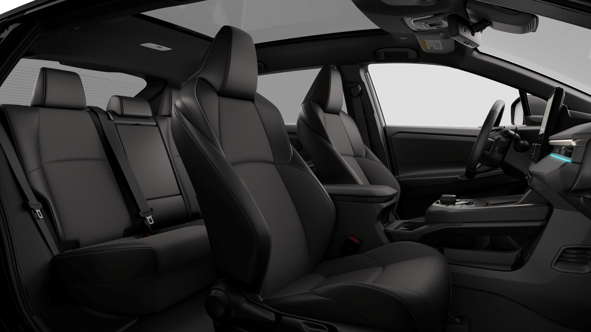 This 2026 Toyota bZ XLE Plus in 03u5 comes with the following features: Electric Motor Single-Speed Automatic FWD 4-Wheel Disc Brakes, 6 Speakers, ABS brakes, Air Conditioning, Alloy wheels, AM/FM radio: SiriusXM, Apple CarPlay/Android Auto, Auto High-beam Headlights, Auto-dimming Rear-View mirror, Automatic temperature control, Brake assist, Bumpers: body-color, Carpet Floor Mats/Cargo Mat, Delay-off headlights, Driver door bin, Driver vanity mirror, Dual front impact airbags, Dual front side impact airbags, Electronic Stability Control, Emergency communication system: Safety Connect (10-year trial), Exterior Parking Camera Rear, Fabric/SofTex Seat Trim, Four wheel independent suspension, Front anti-roll bar, Front Bucket Seats, Front Center Armrest, Front dual zone A/C, Front reading lights, Fully automatic headlights, Garage door transmitter: HomeLink, Heated door mirrors, Heated Front Seats, Heated front seats, Heated steering wheel, Illuminated entry, Knee airbag, Leather steering wheel, Low tire pressure warning, Mudguard, Navigation system: Drive Connect (3 year trial) includes Cloud Navigation with real time traffic and Google POI, Occupant sensing airbag, Outside temperature display, Overhead airbag, Overhead console, Panic alarm, Panoramic Fixed-Glass Roof with Power Sunshade, Passenger door bin, Passenger vanity mirror, Power door mirrors, Power driver seat, Power Liftgate, Power steering, Power windows, Premium Paint, Radio data system, Radio: 14 Toyota Audio Multimedia, Rain sensing wipers, Rear anti-roll bar, Rear seat center armrest, Rear window defroster, Remote keyless entry, Security system, Speed control, Speed-sensing steering, Split folding rear seat, Spoiler, Steering wheel mounted audio controls, Telescoping steering wheel, Tilt steering wheel, Traction control, Trip computer, Turn signal indicator mirrors, Variably intermittent wipers, and Wheels: 18 Alloy with Covers. 143/119 City/Highway MPG