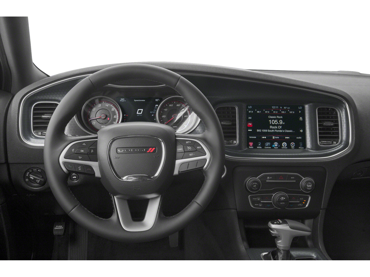 This 2018 Dodge Charger V6 Plus in Pitch Black Clearcoat comes with the following features: 3.6L 6-Cylinder SMPI DOHC 8-Speed Automatic RWD Quick Order Package 29H, Black Cloth, 4-Wheel Disc Brakes, 6 Speakers, ABS brakes, Air Conditioning, Alloy wheels, AM/FM radio: SiriusXM, Anti-whiplash front head restraints, Apple CarPlay/Android Auto, Auto-dimming Rear-View mirror, Automatic temperature control, Brake assist, Bumpers: body-color, Cargo Net, Cloth Sport Seat, Compass, Delay-off headlights, Driver door bin, Driver vanity mirror, Dual front impact airbags, Dual front side impact airbags, Electronic Stability Control, Emergency communication system: SiriusXM Guardian, Four wheel independent suspension, Front anti-roll bar, Front Bucket Seats, Front Center Armrest, Front dual zone A/C, Front fog lights, Front reading lights, Fully automatic headlights, Garage door transmitter: HomeLink, Heated door mirrors, Heated Front Seats, Heated front seats, Illuminated entry, Knee airbag, Leather Shift Knob, Low tire pressure warning, Manufacturer's Statement of Origin, Occupant sensing airbag, Outside temperature display, Overhead airbag, Overhead console, Panic alarm, ParkView Rear Back-Up Camera, Passenger door bin, Passenger vanity mirror, Power 4-Way Driver Lumbar Adjust, Power 8-Way Driver Seat, Power door mirrors, Power driver seat, Power steering, Power windows, Radio data system, Radio: Uconnect 4C w/8.4 Display, Rear anti-roll bar, Rear Armrest w/Cupholder Seat, Rear reading lights, Rear seat center armrest, Rear window defroster, Remote keyless entry, Speed control, Speed-Sensitive Wipers, Split folding rear seat, Steering wheel mounted audio controls, Tachometer, Telescoping steering wheel, Tilt steering wheel, Traction control, Trip computer, Variably intermittent wipers, and Wheels: 18 x 7.5 Cast Aluminum.