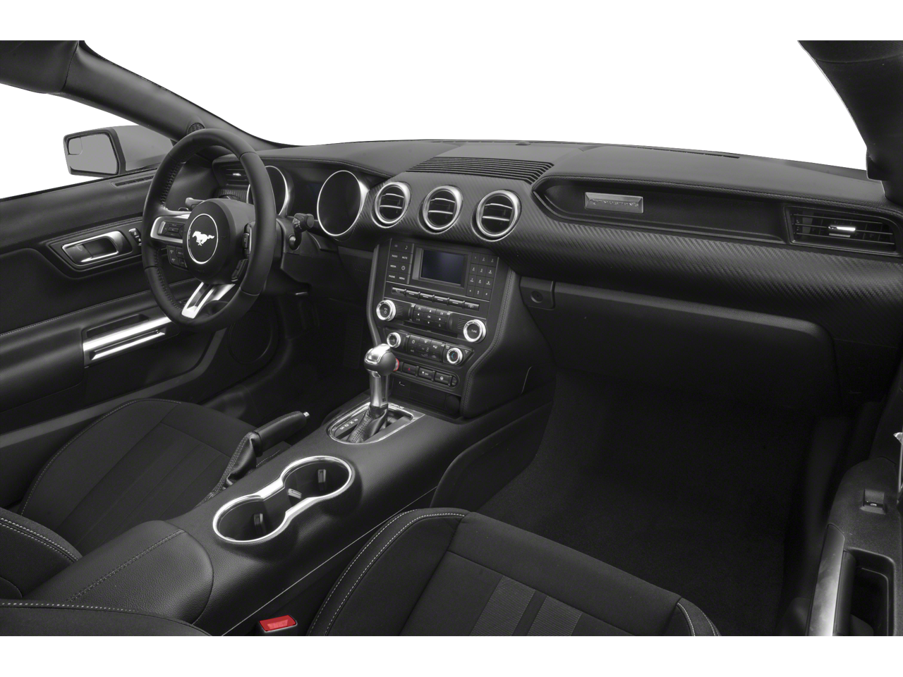 This 2019 Ford Mustang EcoBoost Premium in Shadow Black comes with the following features: EcoBoost 2.3L I4 GTDi DOHC Turbocharged VCT 10-Speed Automatic RWD EcoBoost Performance Package (3.55 TORSEN Limited Slip Rear-Axle, Engine Spun Aluminum Instrument Panel, Gauge Pack (Oil Pressure & Boost), HD Front Springs, Larger Brake Rotors, Larger Radiator, and Wheels: 19 x 9 Ebony Black-Painted Aluminum), Equipment Group 201A (Blind Spot Info System w/Cross-Traffic Alert, Leather Bucket Seats w/Color Accents, and Memory Driver Seat, Mirrors & Ambient Lighting), 4-Wheel Disc Brakes, 9 Speakers, ABS brakes, Air Conditioning, Alloy wheels, AM/FM radio: SiriusXM, AM/FM Stereo, AppLink/Apple CarPlay and Android Auto, Auto-dimming Rear-View mirror, Automatic temperature control, Brake assist, Bumpers: body-color, Climate Controlled Heated/Cooled Front Seats, Compass, Delay-off headlights, Driver door bin, Driver vanity mirror, Dual front impact airbags, Dual front side impact airbags, Electronic Stability Control, Emergency communication system: 911 Assist, Exterior Parking Camera Rear, Four wheel independent suspension, Front anti-roll bar, Front Bucket Seats, Front Center Armrest, Front dual zone A/C, Front fog lights, Front reading lights, Fully automatic headlights, Garage door transmitter, Heated door mirrors, Heated front seats, Illuminated entry, Knee airbag, Leather Bucket Seats, Leather Shift Knob, Low tire pressure warning, Occupant sensing airbag, Outside temperature display, Overhead airbag, Overhead console, Panic alarm, Passenger door bin, Passenger vanity mirror, Power door mirrors, Power driver seat, Power passenger seat, Power steering, Power windows, Radio data system, Rear anti-roll bar, Rear window defroster, Remote keyless entry, Security system, SiriusXM Radio, Speed control, Speed-sensing steering, Speed-Sensitive Wipers, Split folding rear seat, Spoiler, Steering wheel mounted audio controls, SYNC 3 Communications & Entertainment System, Tachometer, Telescoping steering wheel, Tilt steering wheel, Traction control, Trip computer, Turn signal indicator mirrors, Variably intermittent wipers, Ventilated front seats, Voice-Activated Touch-Screen Navigation System, Voltmeter, and Wheels: 18 x 8 Machined-Face Aluminum.
