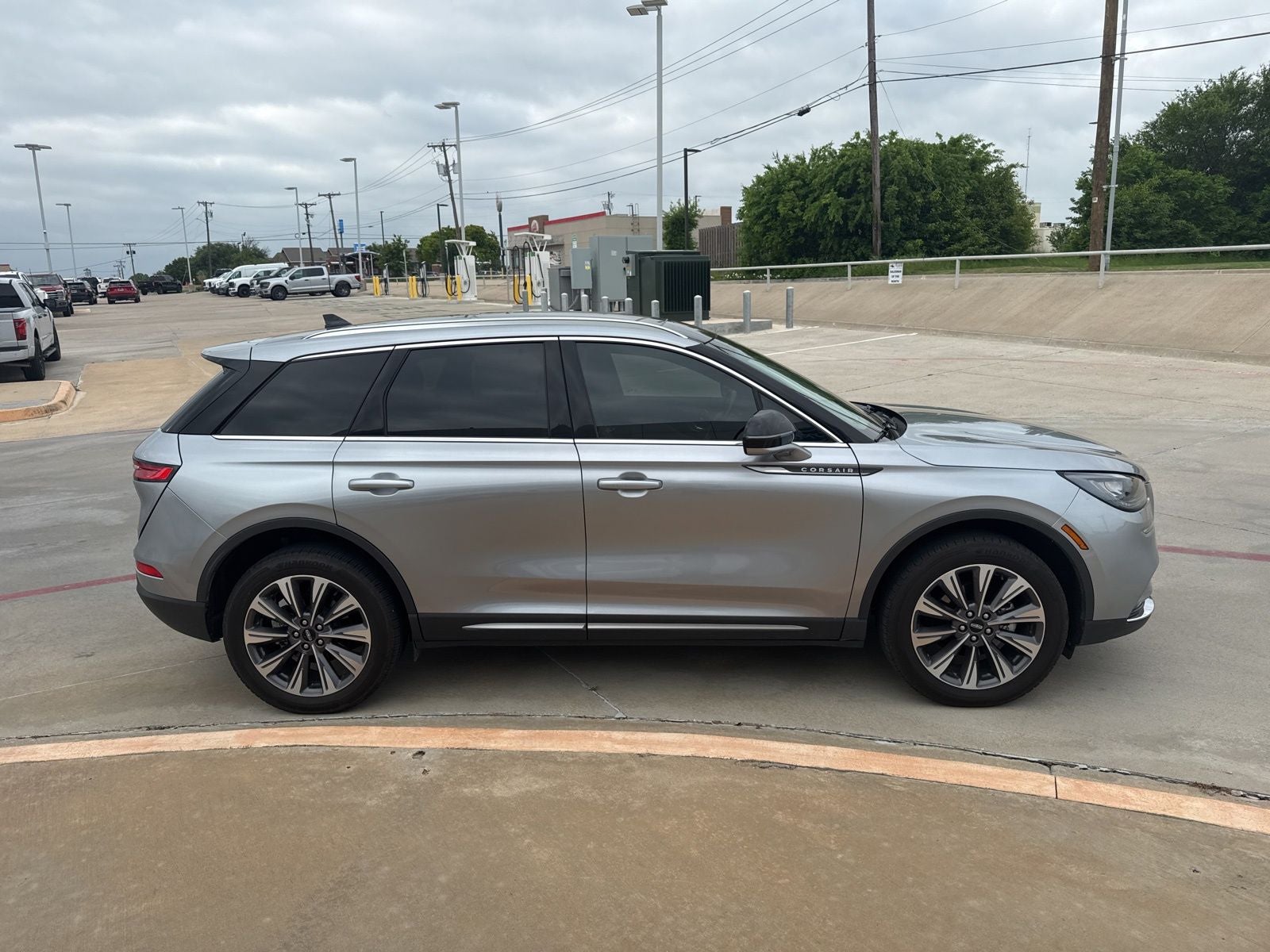 This 2021 Lincoln Corsair comes nicely equipped with Elements Package (Heated Rear Seat, Heated Steering Wheel, Rain Sensing Wipers, and Windshield Wiper De-Icer), Equipment Group 200A, 14 Speakers, 19 Bright Machined Aluminum Wheels, 3.81 Axle Ratio, 4-Wheel Disc Brakes, ABS brakes, Air Conditioning, All-Weather Floor Liners, Alloy wheels, AM/FM radio: SiriusXM, Auto High-beam Headlights, Auto tilt-away steering wheel, Auto-dimming door mirrors, Auto-dimming Rear-View mirror, Automatic temperature control, Brake assist, Bumpers: body-color, Compass, Delay-off headlights, Driver door bin, Driver vanity mirror, Dual front impact airbags, Dual front side impact airbags, Electronic Stability Control, Emergency communication system, Four wheel independent suspension, Front anti-roll bar, Front Bucket Seats, Front Center Armrest, Front dual zone A/C, Front fog lights, Front reading lights, Fully automatic headlights, Garage door transmitter, Heated door mirrors, Heated front seats, Illuminated entry, Knee airbag, Leather steering wheel, Low tire pressure warning, Memory seat, Navigation System, Occupant sensing airbag, Outside temperature display, Overhead airbag, Overhead console, Panic alarm, Passenger door bin, Passenger vanity mirror, Power door mirrors, Power driver seat, Power Liftgate, Power moonroof: Panoramic Vista Roof, Power passenger seat, Power steering, Power windows, Premium Leather Heated Comfort Seats, Radio data system, Radio: Revel Audio System w/HD Radio & MP3, Rear anti-roll bar, Rear reading lights, Rear seat center armrest, Rear window defroster, Rear window wiper, Remote keyless entry, Security system, SiriusXM Radio, Speed control, Speed-sensing steering, Speed-Sensitive Wipers, Split folding rear seat, Spoiler, Steering wheel memory, Steering wheel mounted A/C controls, Steering wheel mounted audio controls, SYNC 3 Communications & Entertainment System, Tachometer, Telescoping steering wheel, Tilt steering wheel, Traction control, Trip computer, Turn signal indicator mirrors, and Variably intermittent wipers.