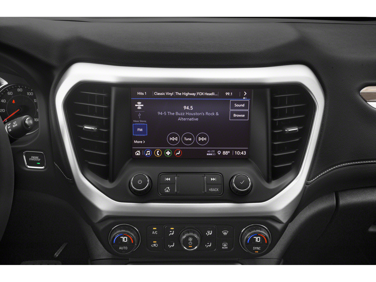 - Audio system, 8" diagonal GMC Infotainment System with Navigation includes multi-touch display, AM/FM/SiriusXM stereo, Bluetooth® streaming audio for music and most phones, Android Auto and Apple CarPlay capability for compatible phones, advanced voice recognition, in-vehicle apps, personalized profiles for infotainment and vehicle settings