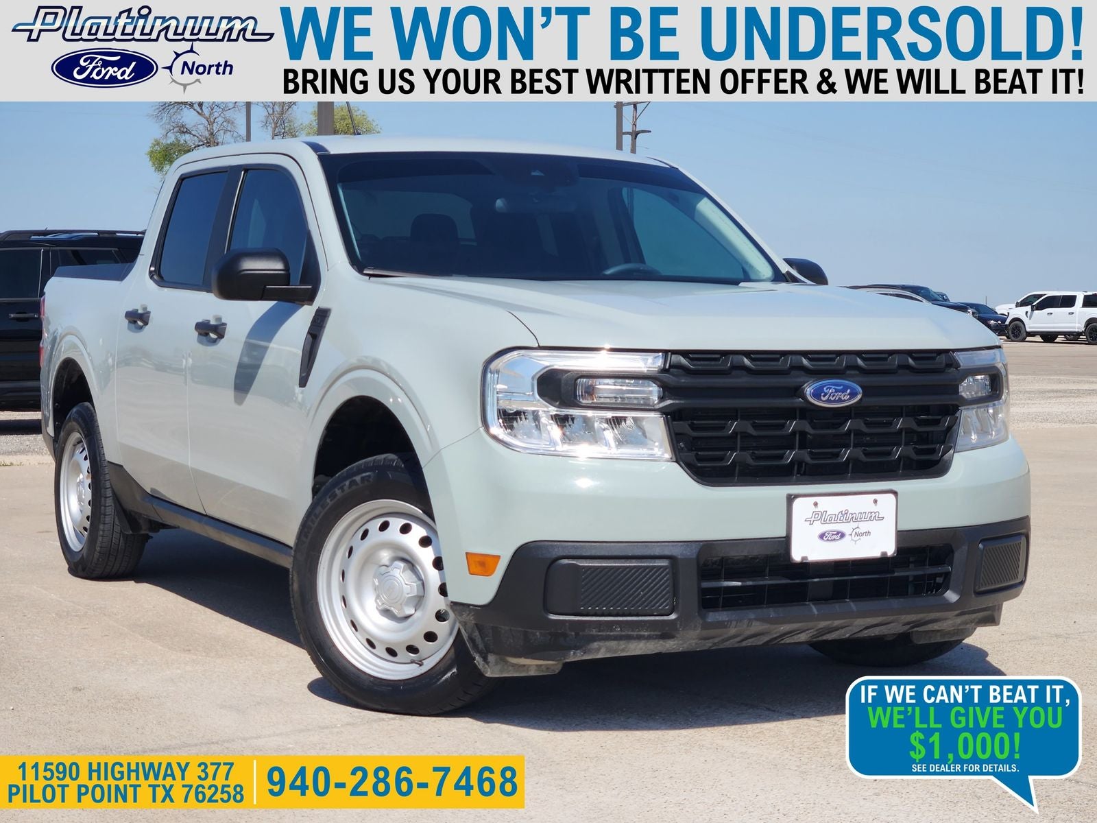 Certification Program Details: Ford Blue Advantage: Blue Certified * 139 Point Inspection * Transferable Warranty * Vehicle History * Warranty Deductible: $100 * Roadside Assistance * Limited Warranty: 3 Month/4,000 Mile (whichever comes first) after new car warranty expires or from the certified purchase date * and 11,000 FordPass Rewards Points to use toward first maintenance visit Welcome to Platinum Ford North – Pilot Point, TX At Platinum Ford North, we take pride in being one of the top destinations for Ford sales and service in the Pilot Point area. From your first visit to every mile down the road, our commitment to exceptional customer care sets us apart. Whether you're looking to buy, finance, or service a new or pre-owned Ford, our experienced team is here to make your journey effortless and enjoyable. We’re dedicated to building relationships that last long after the sale. Contact us today at (940) 292-5711 for your no-obligation internet price quote plus dealer-installed upgrades and routine maintenance options. We’re excited to welcome you to the Platinum Ford North family — and to help you drive with confidence for years to come.