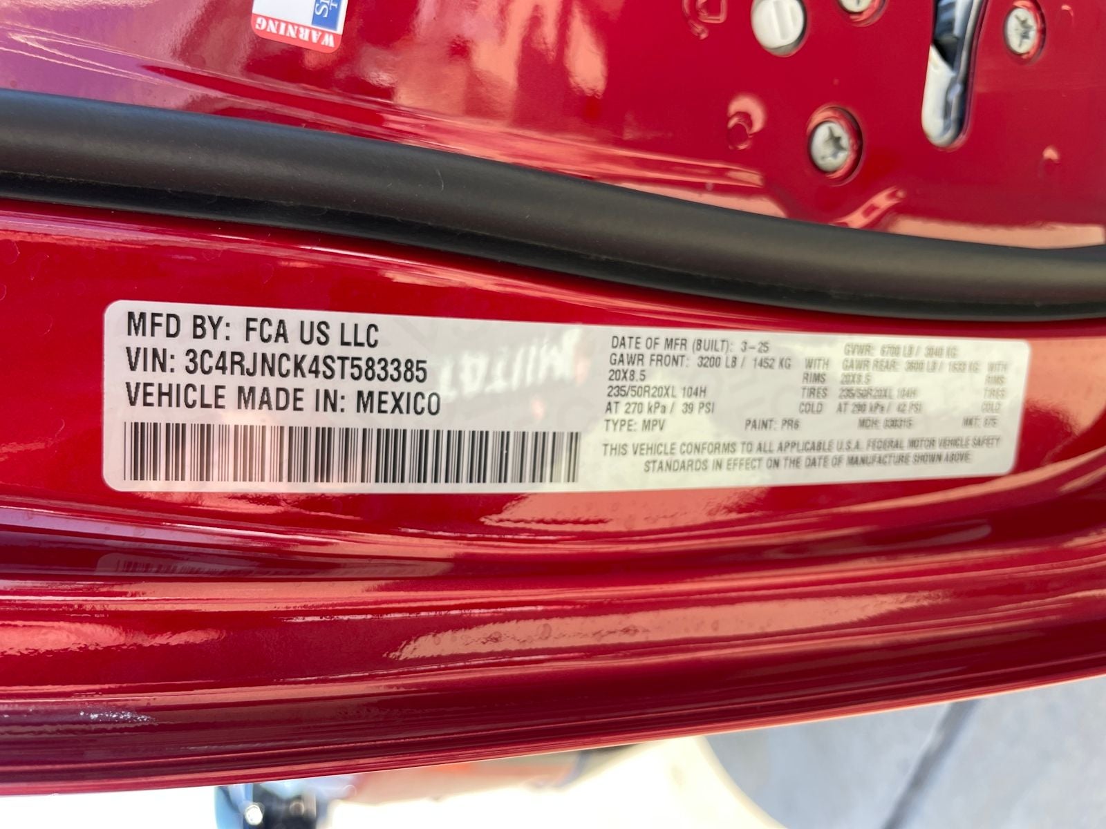 - Tires: 235/50R20XL All-Season LRR