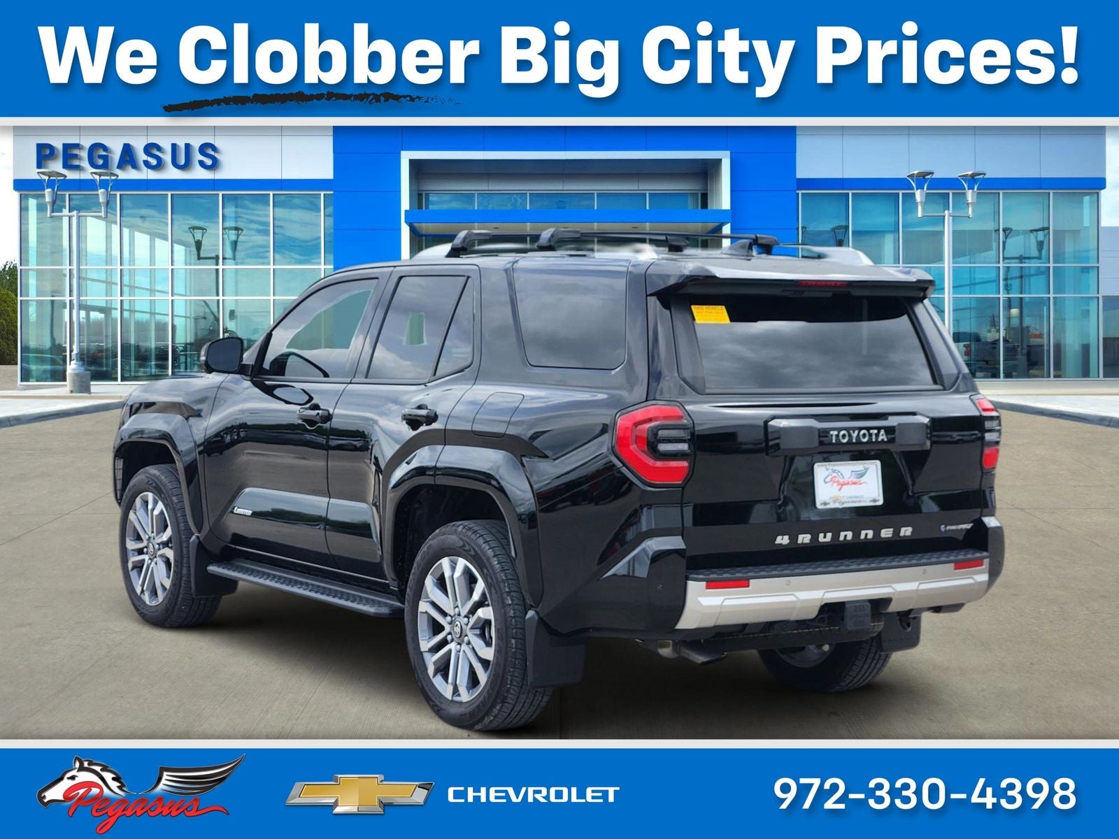 This 2025 Toyota 4Runner i-FORCE MAX Hybrid Limited in Black comes with the following features: 2.4L I4 FI Hybrid Turbocharged DOHC 16V, ABS brakes, Active Cruise Control, Alloy wheels, Compass, Electronic Stability Control, Front dual zone A/C, Heated & Ventilated Front Bucket Seats, Heated door mirrors, Illuminated entry, Leather Seat Trim, Low tire pressure warning, Navigation System, Remote keyless entry, Traction control, 15 Speakers, 4-Wheel Disc Brakes, Air Conditioning, AM/FM radio: SiriusXM, Anti-whiplash front head restraints, Apple CarPlay/Android Auto, Auto High-beam Headlights, Auto-dimming Rear-View mirror, Automatic temperature control, Brake assist, Bumpers: body-color, Delay-off headlights, Driver door bin, Driver vanity mirror, Dual front impact airbags, Dual front side impact airbags, Emergency communication system: Safety Connect (1-year trial), Exterior Parking Camera Rear, Front anti-roll bar, Front Bucket Seats, Front Center Armrest, Front fog lights, Front reading lights, Front wheel independent suspension, Fully automatic headlights, Knee airbag, Leather Shift Knob, Leather steering wheel, Memory seat, Occupant sensing airbag, Outside temperature display, Overhead airbag, Overhead console, Panic alarm, Passenger door bin, Passenger vanity mirror, Power door mirrors, Power driver seat, Power passenger seat, Power steering, Power windows, Radio: 14 Audio, Rear anti-roll bar, Rear seat center armrest, Rear side impact airbag, Rear window defroster, Rear window wiper, Security system, Speed control, Speed-sensing steering, Split folding rear seat, Spoiler, Steering wheel mounted audio controls, Tachometer, Telescoping steering wheel, Tilt steering wheel, Trip computer, Turn signal indicator mirrors, Variably intermittent wipers, and Wheels: 20 Gray Painted Alloy. Odometer is 1217 miles below market average!
