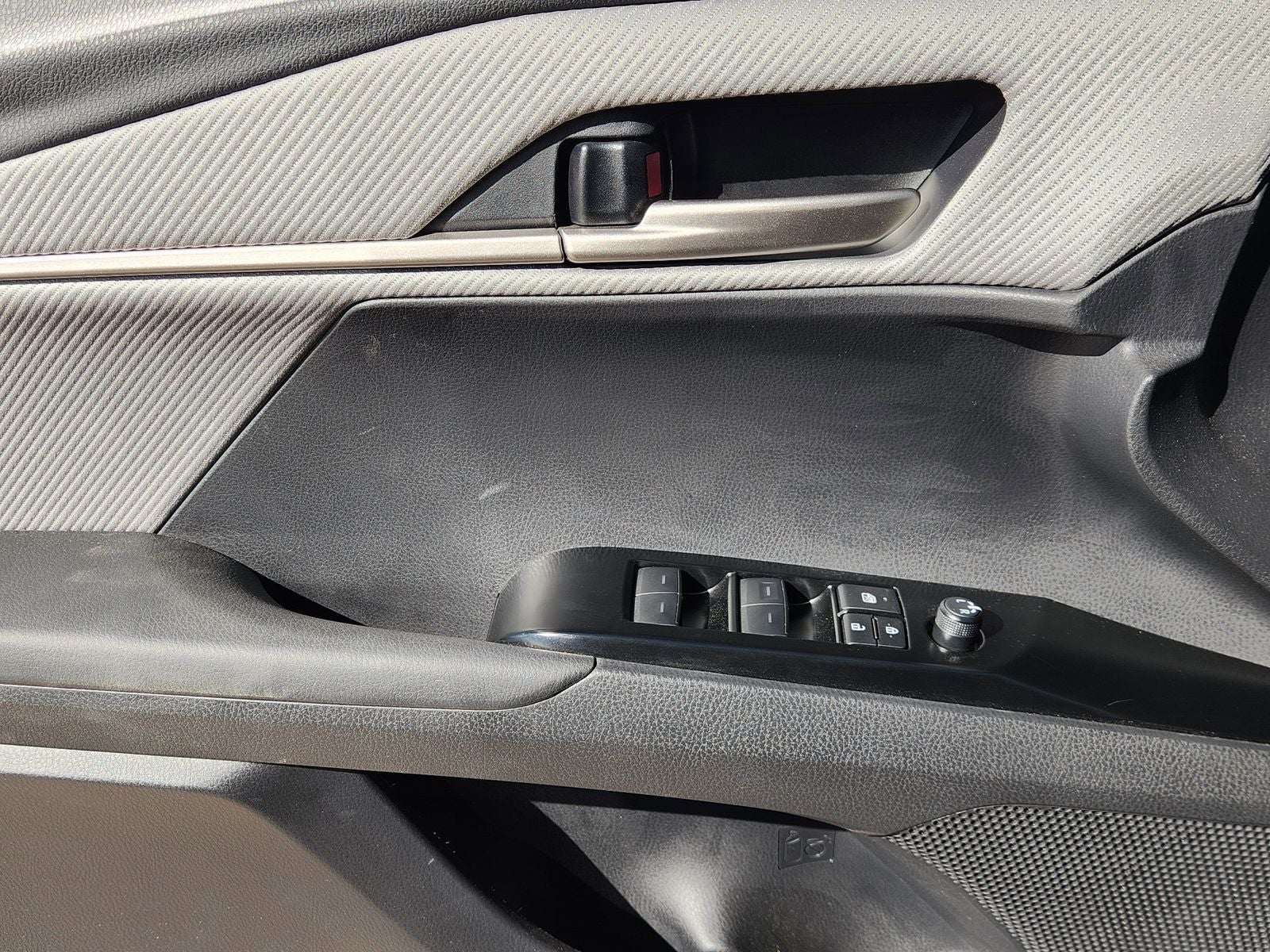 Inside, the Camry SE Hybrid features a modern, driver-focused cabin with dual-zone automatic climate control, Smart Key with push-button start, auto-dimming rearview mirror with HomeLink, and a 12.3-inch Toyota Audio Multimedia touchscreen with wireless streaming audio, voice activation, and steering wheel controls. The 60/40 split-folding rear seat and generous trunk space provide everyday versatility.