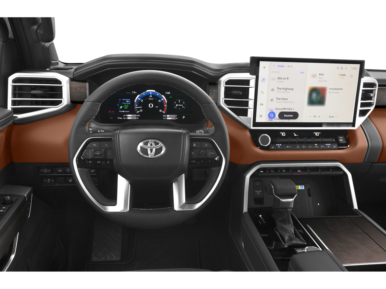 This 2026 Toyota Tundra 4WD comes nicely equipped with 1794 Grade Package (Chrome Exhaust Tail Pipe & Diffuser), 10-Way Power Adjustable Heated and Ventilated Front Seats, 12 Speakers, 3.31 Axle Ratio, 4-Wheel Disc Brakes, ABS brakes, Air Conditioning, Alloy wheels, AM/FM radio: SiriusXM, Apple CarPlay/Android Auto, Auto High-beam Headlights, Auto-dimming door mirrors, Auto-dimming Rear-View mirror, Automatic temperature control, Blind Spot Monitor, Brake assist, Bumpers: body-color, Chrome Plated Power Folding Outside Mirrors, Compass, Delay-off headlights, Driver door bin, Driver vanity mirror, Dual front impact airbags, Dual front side impact airbags, Electronic Stability Control, Emergency communication system: Safety Connect (up to 10-year trial subscription), Exterior Parking Camera Rear, Front anti-roll bar, Front Bucket Seats, Front Center Armrest, Front dual zone A/C, Front fog lights, Front reading lights, Front wheel independent suspension, Fully automatic headlights, Garage door transmitter: HomeLink, Head Up Display (HUD), Heated door mirrors, Heated front seats, Heated rear seats, Heated steering wheel, Illuminated entry, Knee airbag, Leather Shift Knob, Leather steering wheel, Low tire pressure warning, Memory seat, Multi-Terrain Back Monitor, Navigation system: Drive Connect Cloud Navigation (1-year trial subscription), Occupant sensing airbag, Outside temperature display, Overhead airbag, Overhead console, Panic alarm, Panoramic View Back Monitor, Passenger door bin, Passenger vanity mirror, Power door mirrors, Power driver seat, Power moonroof, Power passenger seat, Power Running Boards, Power steering, Power windows, Premium Leather Seat Trim, Radio data system, Radio: Premium Audio, Rain sensing wipers, Rear reading lights, Rear seat center armrest, Rear step bumper, Rear window defroster, Remote keyless entry, Safety Connect, Security system, Speed control, Speed-sensing steering, Speed-Sensitive Wipers, Split folding rear seat, Steering wheel memory, Steering wheel mounted audio controls, Tachometer, Telescoping steering wheel, Tilt steering wheel, Traction control, Trip computer, Turn signal indicator mirrors, Variably intermittent wipers, Ventilated front seats, Ventilated rear seats, Voltmeter, Wheel Locks, and Wheels: 20 Machined Finish Alloy.
